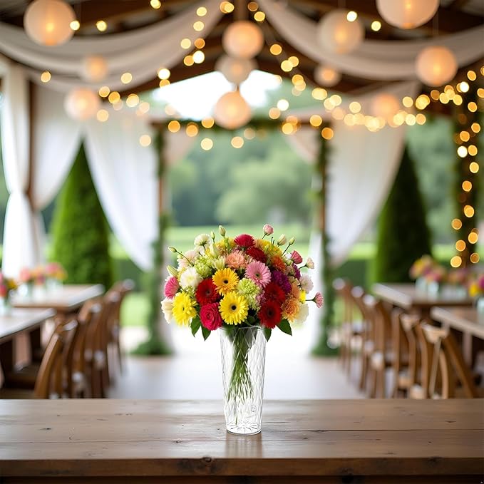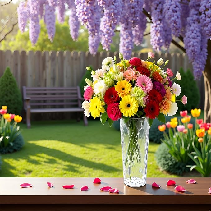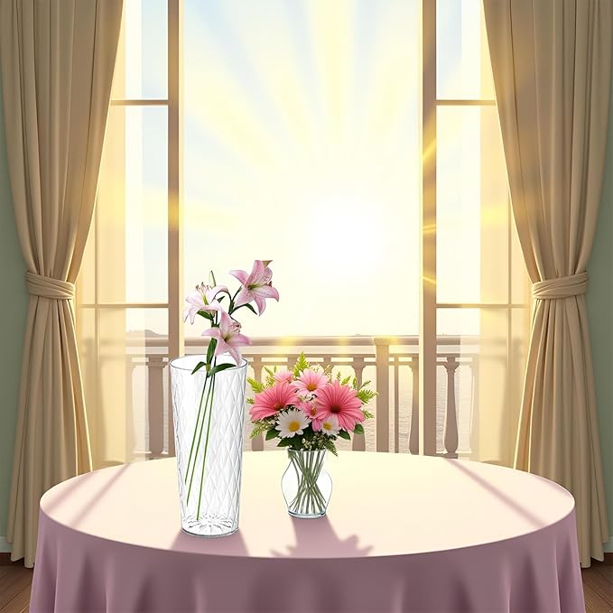 - Acrylic vases for centerpieces: The plastic flower vase has a high quality PC material, highly durable and long, the large vase is very sturdy but not bulky and has a lot of room for wiggle room and other small accessories. The crystal-like transparency makes it easy to see the flowers inside without any interference from the vase. The crystal-clear acrylic construction offers the luxurious appearance of glass while being notably more durable and lightweight.