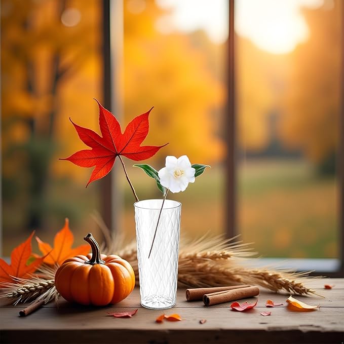 - Wider diameter design: The acrylic flower vase standing 10.43''tall with a 4.72'' diameter, this versatile vessel provides ample space for displaying fresh-cut flowers, artificial stems, or decorative branches.