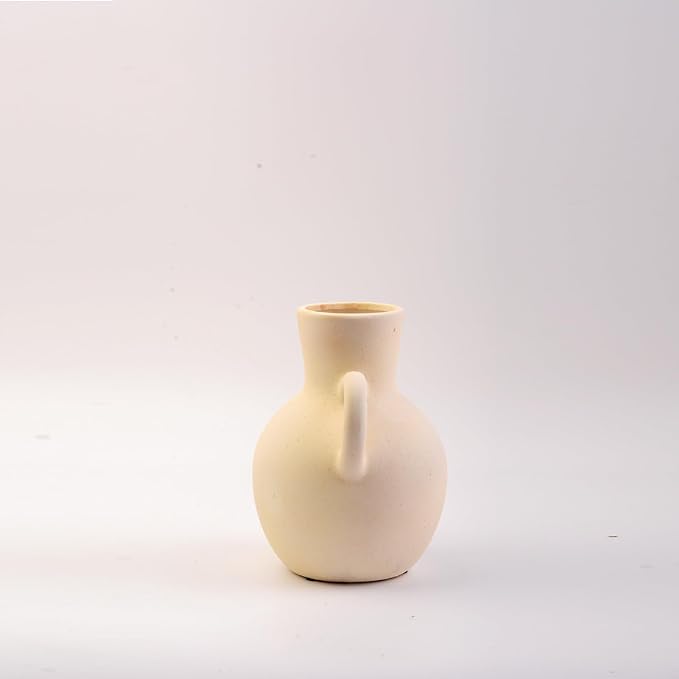 Plain Beige Ceramic Vase for DIY Painting - Customizable Handmade Pottery, Blank Canvas for Flower Arrangements, Home Decor, Wedding & Office Decoration (6.5L x 5.12W x 7.28H)