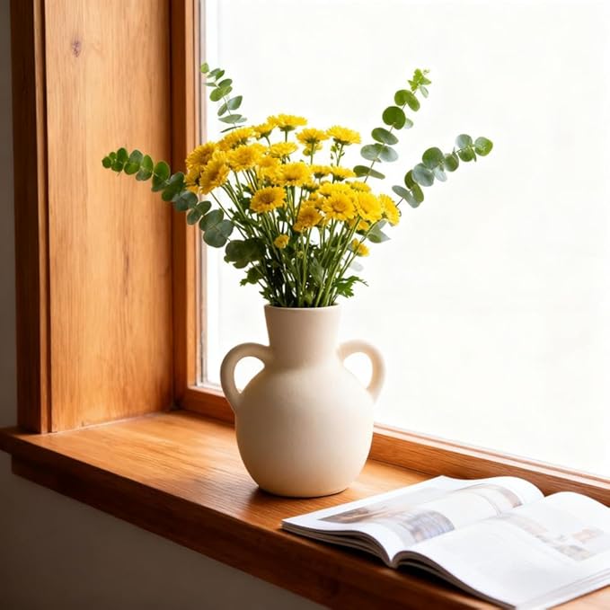 - VERSATILE DESIGN: Elegant ceramic vase with dual handles, perfect for fresh flowers, dried arrangements, or as a decorative piece for home, wedding, and office settings