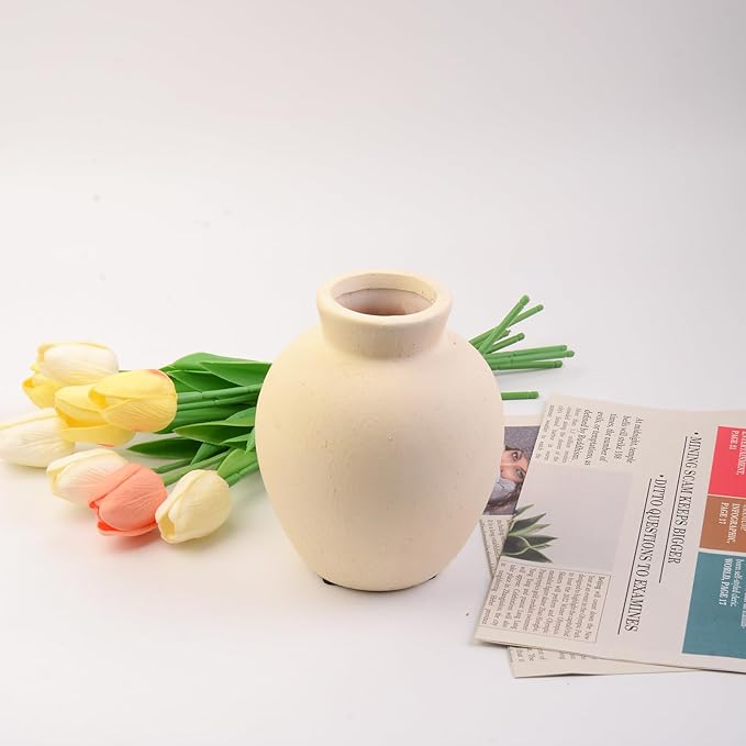 Plain Beige Ceramic Vase for DIY Painting - Customizable Handmade Pottery, Blank Canvas for Flower Arrangements, Home Decor, Wedding & Office Decoration (5L x 5W x 6H)
