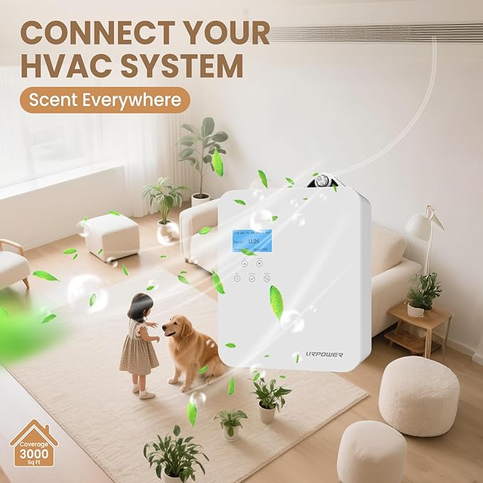 URPOWER Waterless Nebulizing Scent Diffuser 300ml Lockable Oil Bottle, Up to 3000 Sq Ft, Smart APP Control HVAC/Wall/Desktop Cold-Air Aromatherapy Machine for Home/Office/Hotel Starter Oil Included