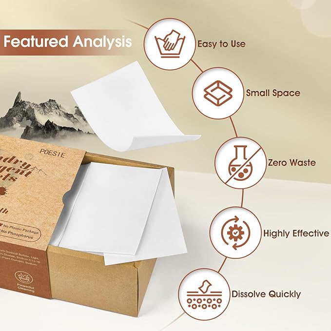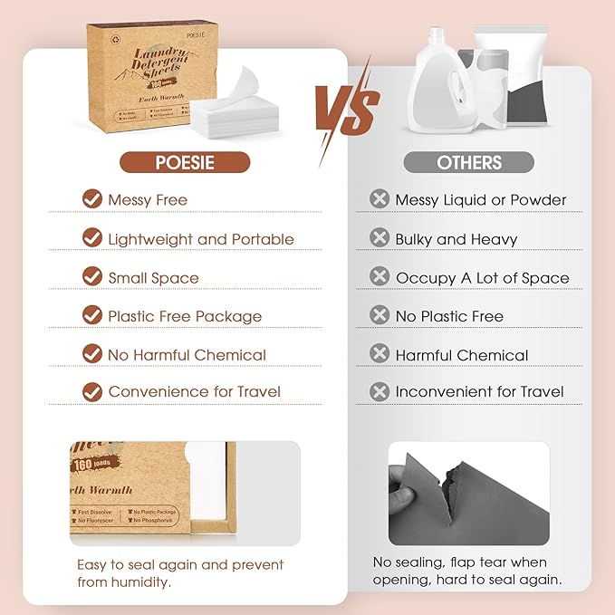 Poesie Laundry Detergent Sheets Earth Warmth Scent 160 Count Road Trip College Dorm Essentials for Travel Washing Sheets Detergent Liquidless Portable No Messy Laundry Strips