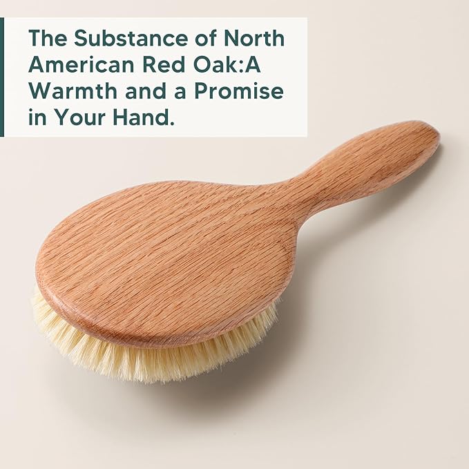 - HEWN FROM SOLID NORTH AMERICAN RED OAK – Experience the grounding weight and cool touch of a handle milled from a single, monolithic block of oak. Unlike hollow plastic or glued veneers, this artisan-crafted tool offers superior balance and durability. An heirloom-quality piece designed to age gracefully alongside your daily grooming ritual.