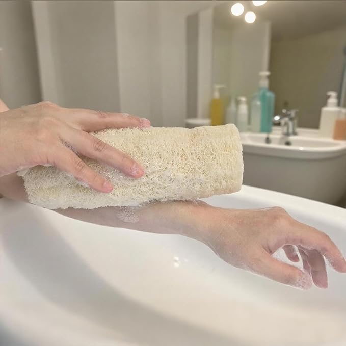 - Large sized at about 7.48" x 3.15", our large luffa body scrubber sponges cover more of your body. Or you can cut it into the size as you need.