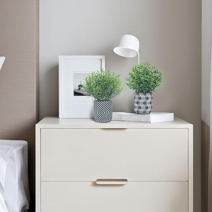 - Durable Material with Fashionable Style: Made of premium plastic, these small fake plants won’t wither or fade. Featuring a sleek geometric pattern and a cement ceramic texture, this planter effortlessly blends modern minimalism with natural charm. Ideal for enhancing Scandinavian, industrial, or boho-style interiors.Please Note: The ceramic pots are fragile — handle with care