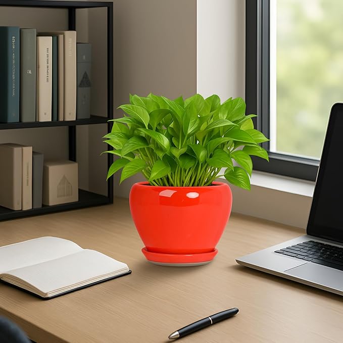 - Plant Pot with Drainage Hole and Saucer: This ceramic plant pot with drainage holes allow for easy plant drainage, beneficial for plant respirationthe, ceramic tray to collect excess water, and the leak-proof mesh reduce soil erosion, Our ceramic planter features a waterproof-coated tray that effectively prevents water from seeping through, allowing you to place the pot anywhere with confidence