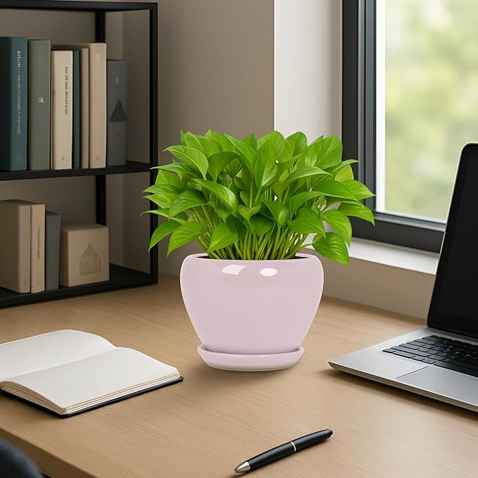 - Plant Pot with Drainage Hole and Saucer: This ceramic plant pot with drainage holes allow for easy plant drainage, beneficial for plant respirationthe, ceramic tray to collect excess water, and the leak-proof mesh reduce soil erosion, Our ceramic planter features a waterproof-coated tray that effectively prevents water from seeping through, allowing you to place the pot anywhere with confidence