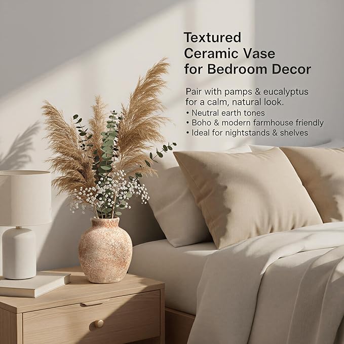 - [Timeless Decorative Vase] The vase set features a minimalist round shape and rustic texture that pair beautifully with farmhouse, boho, classic, traditional, vintage, minimalist, or modern decor. It complements any style.