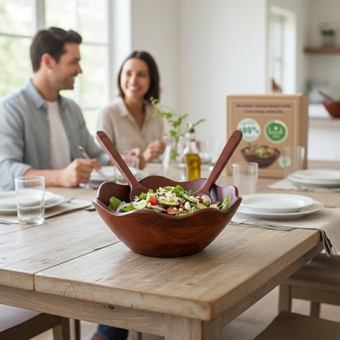 - GIFT-READY & VERSATILE: Comes in a beautifully packaged gift box, making it an excellent gift for housewarming, weddings, Mother’s Day, Christmas, Valentine’s Day or anniversaries. A must-have wooden salad bowl set for healthy living and eco-conscious homes. Ideal kitchen gifts for women