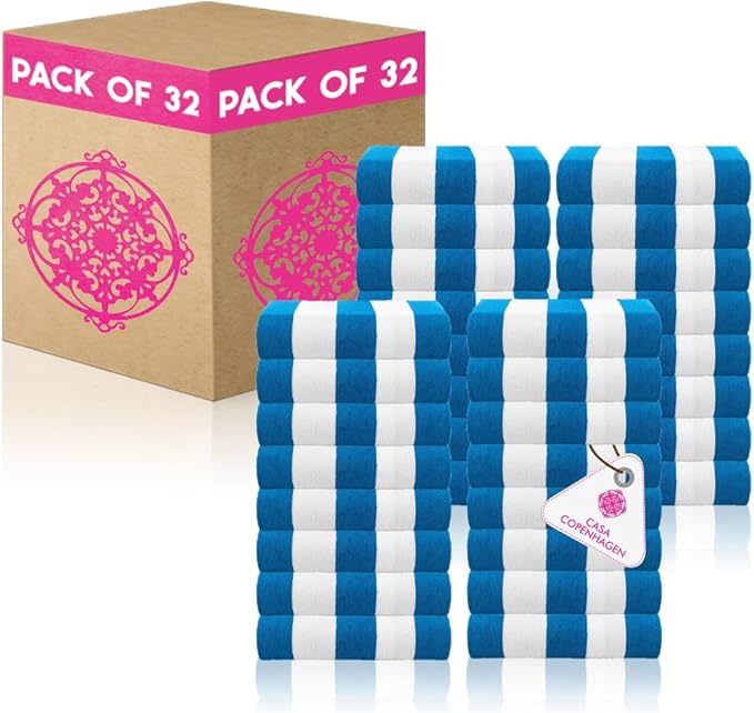 CASA COPENHAGEN Cabana Towel Designed in Denmark Rough and Tough, Quick Dry, Beach, Pool, Bath & Shower 30x60 inches 32 Pieces Cotton Beach Bath Towels Set - Turquoise