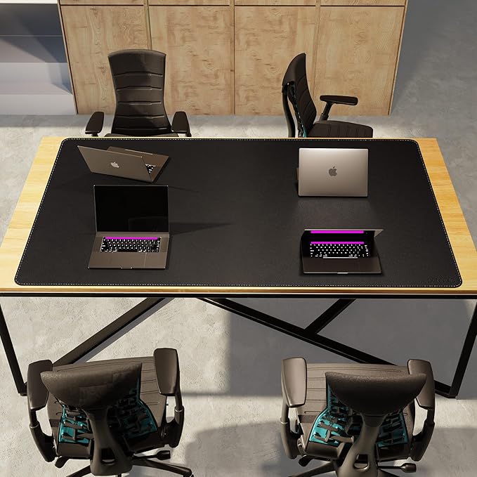 CENNBIE HUGE200 78.8" x 47" Black Leather Desk Mat for Conference Table, Dining Table, Work Table, Banquet Tables, Library Table
