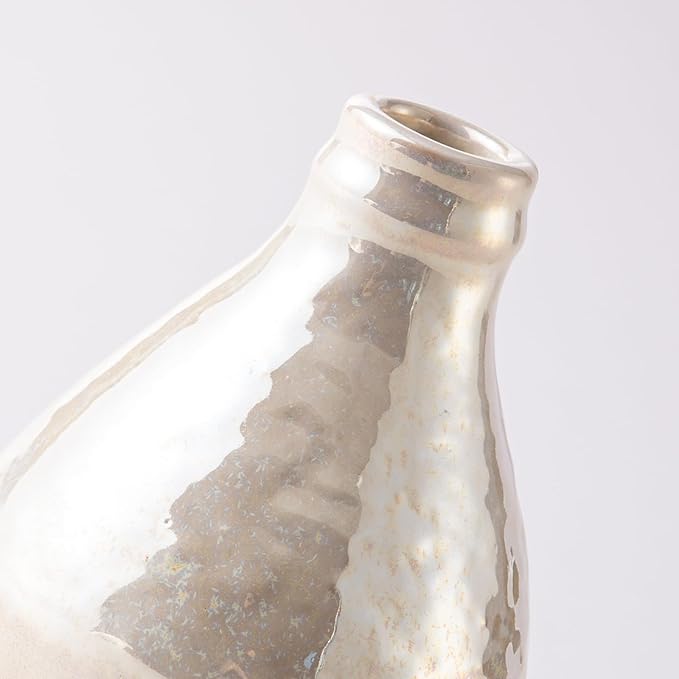 - 【Ceramic Vase Set of 3】Length X Diameter = 8.7X3.4", 5.9X3.4", 4.1X3.4". A ceramic vase set, but looks metallic. The uneven texture of the surface with its special color, gives it a different visual effect in different light. Its beauty is waiting for you to explore.