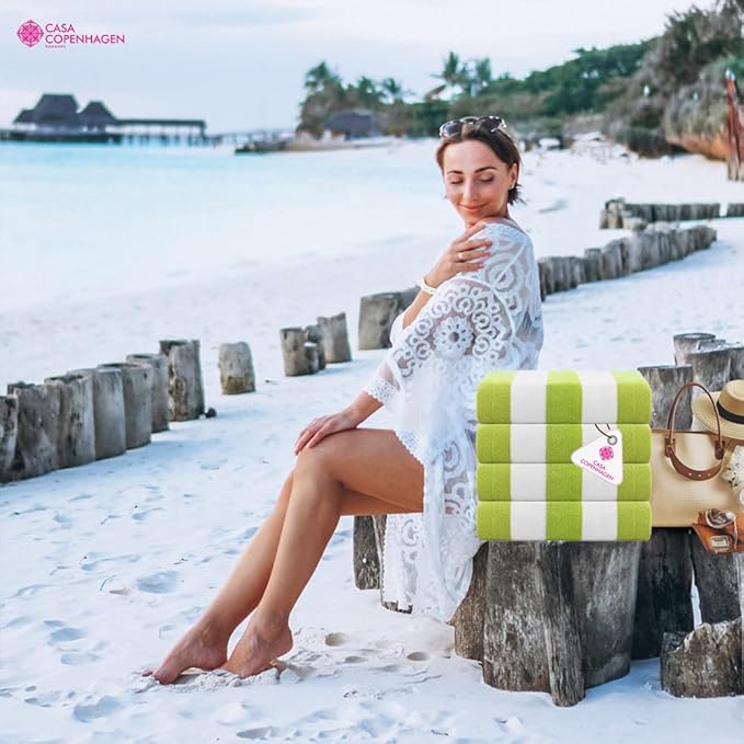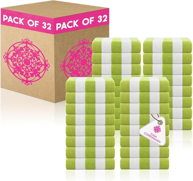 CASA COPENHAGEN Cabana Towel Designed in Denmark Rough and Tough, Quick Dry, Beach, Pool, Bath & Shower 30x60 inches 32 Pieces Cotton Beach Bath Towels Set - Green