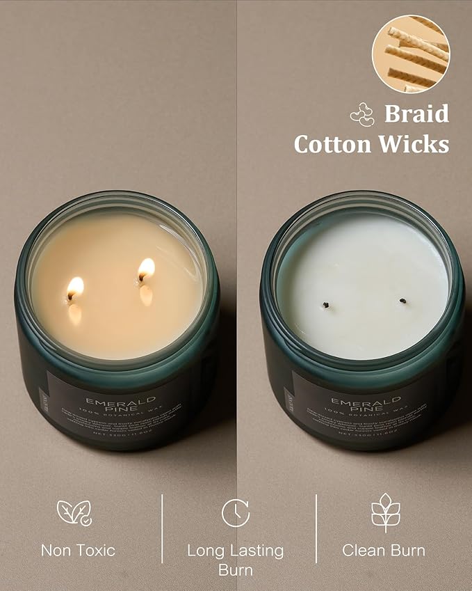 M&SENSE Pine Scented Candles Natural Soy Wax Clean Non Toxic 11.6oz 70 Hours Large Long Lasting Christmas Winter Scented 2 Wicks Candle Gift for Holiday & Family Friends Teachers