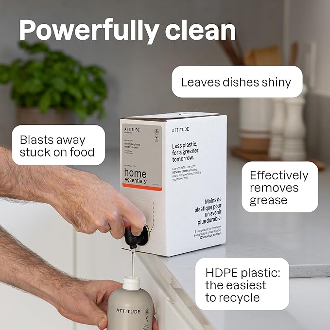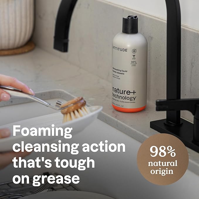 ATTITUDE Dish Soap, Infused with Essential Oils, Plant-Based Ingredients, EWG Verified, Great for Clean and Sparkling Dishes, Vegan Dishwashing Liquid, Orange & Sage, 488 mL