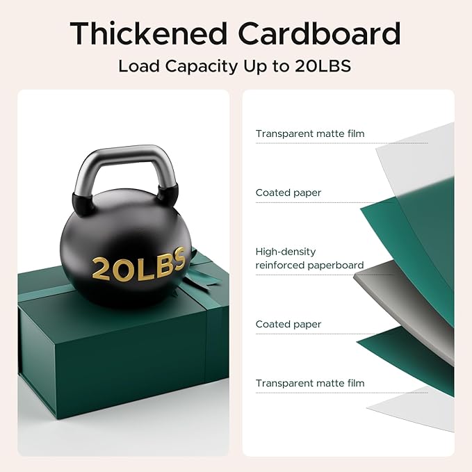 - High-Quality Paper Materials: This gift box safeguards your gifts with its exceptional weight capacity. Crafted from high-quality, selected cardboard, it can support up to 20LB. Whether you’re packing rich tea, luxurious chocolate candies, or premium beef jerky, your items will be securely stowed. The durable texture of the cardboard and the meticulous craftsmanship reflect quality in every detail. It carries not only the weight of the gifts but also your heartfelt love and blessings, ensuring every Christmas surprise arrives safely