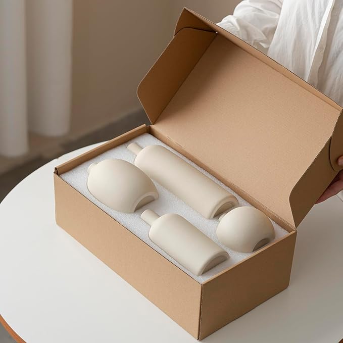 Modern Ceramic Vase Set, Neutral Colors, Decorative Vases for Home Decor, 4 Piece Collection (Beige)