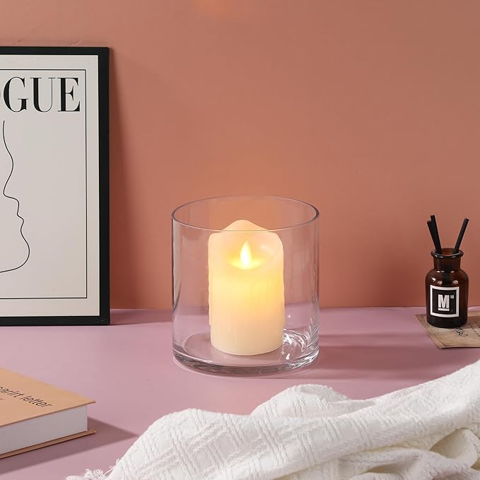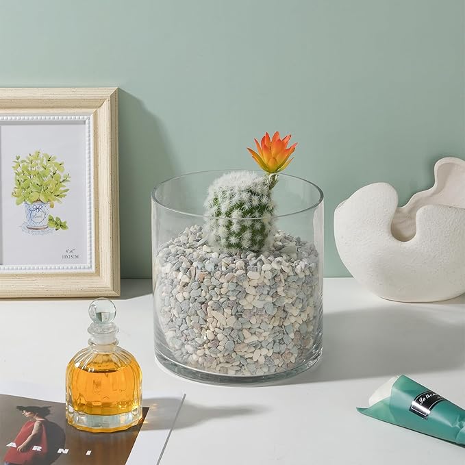 6" Wide 6" Tall Large Hand Blown Sturdy Clear Cylinder Glass Vase, Centerpiece Flower Vase for Rose, Tulip, Boquets, Hurricane Candle Holder (1, 6"x6")