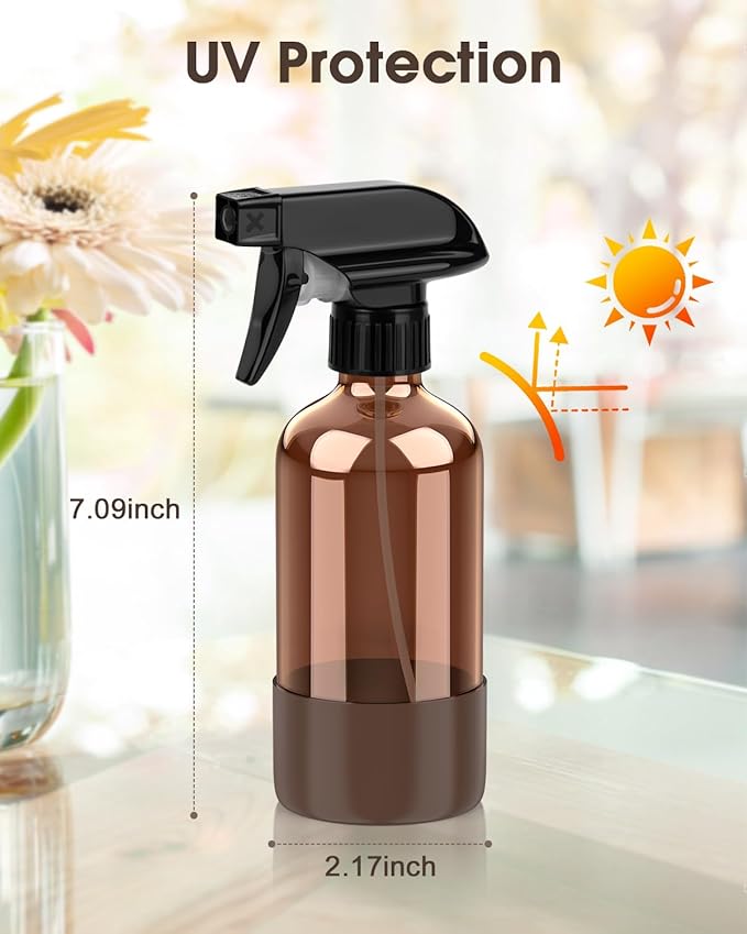 - Amber Glass, UV Protection: The spray bottle is made from high-quality amber glass, which provides UV protection to preserve the contents from light degradation, making it ideal for essential oils, cleaning solutions, and more.