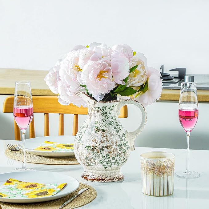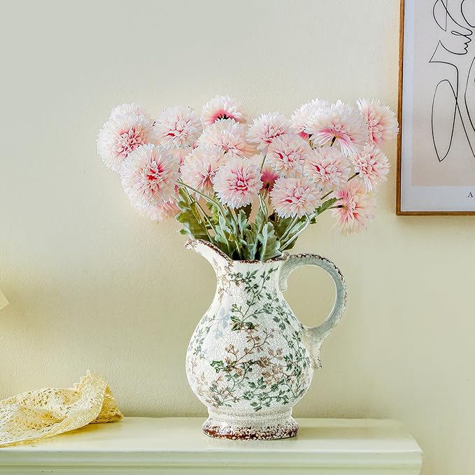 - Elegant Green & Beige Design – This green and beige vase features a classic Chinoiserie floral pattern with a single handle and a vintage pitcher shape, adding vintage charm and sophistication to your decorative vases for home decor collection.