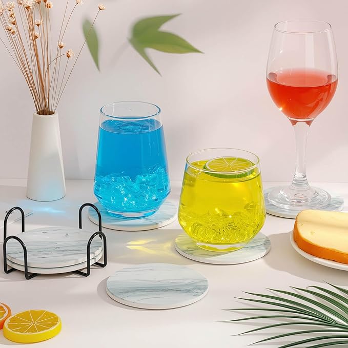 - Home decoration: These marble stoneware coasters are great to decorate your kitchen, living room, bedroom or office.With our absorbent coasters, you don't worry about the drink drip and dirty your favorite table. You can enjoy a good time with your family or friend together.
