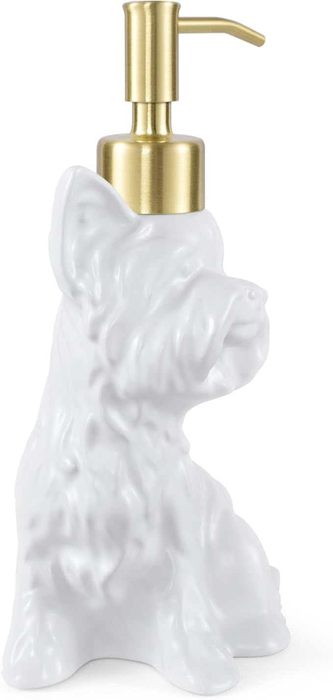- Yorkshire Terrier Unique Hand Soap Dispenser Size: Crafted from durable High-quality ceramic, this Yorkshire Terrier modern home decor and bathroom accessories measures 4.02x3.15x7.95 inches and 8.0oz or 240ml.