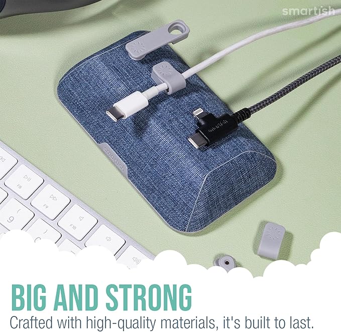 Smartish® Magnetic Cord Holder - Bigger Cable Wrangler Stocking Stuffer Organizer with Magnet Clips for Charger Management on Desktop, Nightstand - Holds 6+ Cables - Blue Jeanie