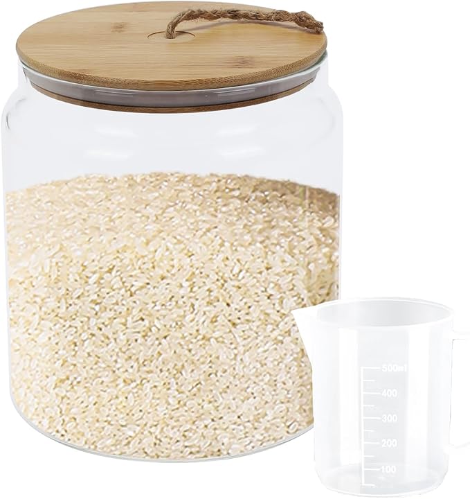 - Big Diameter: The mouth of the glass cereal containers storage is large enough, so you can put whatever you like into it. Just like suger,salt,coffee beans,pet treat,flour,pasta,rice,loose tea and more, widely use for your kitchen.
