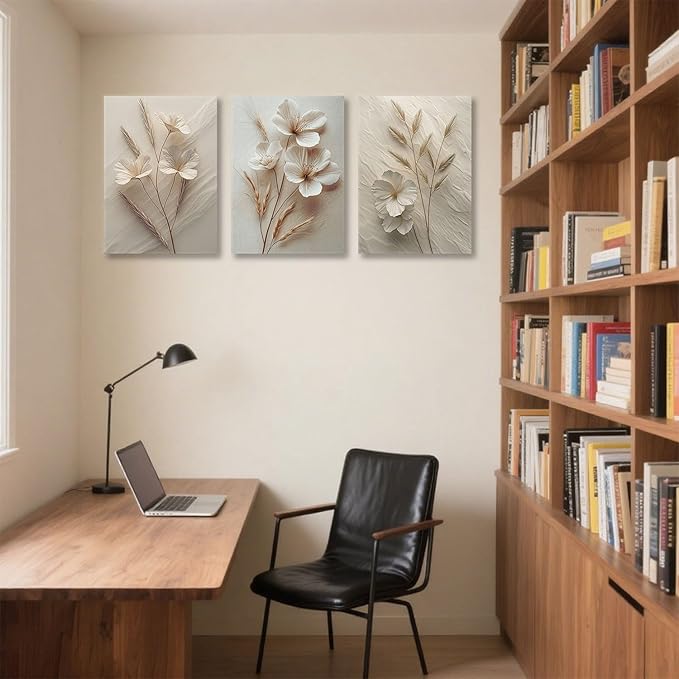 - Neutral Floral Canvas Wall Art: Elevate your space with this 3-panel neutral floral wall art collection. Showcases charming beige flower designs that blend retro botanical elements with modern minimalist aesthetics, instantly becoming a captivating focal point in any room.