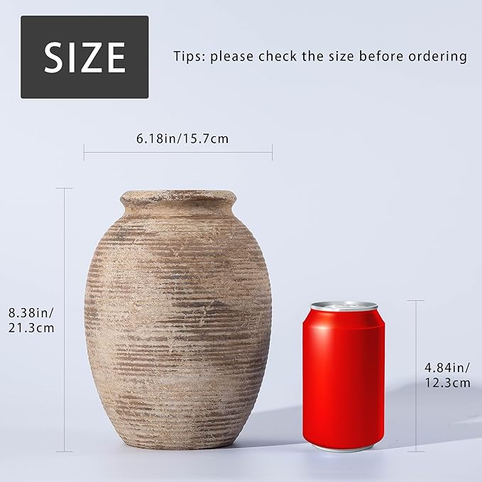- 【Decorative Vase - Great Gift】 This natural style is classic and all-matching, it is a great home decoration, no matter in-door or out-door. This vase also is a great git for families, friends and neighbors.