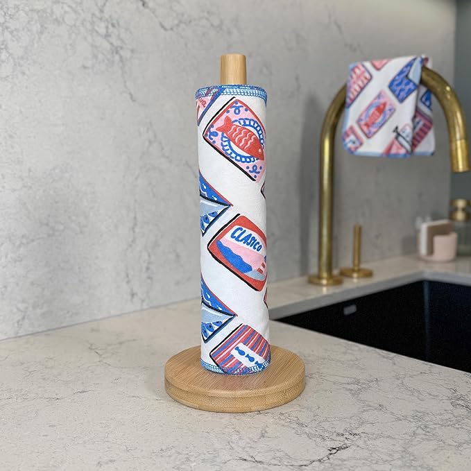Reusable Paper Towels - 10 PACK - Roll of Washable Cotton Cloth Paper Towels - Paperless Reusable Napkins Cloth Washable - Absorbent + Long Lasting - Zero Waste Products - (Sardine Social)