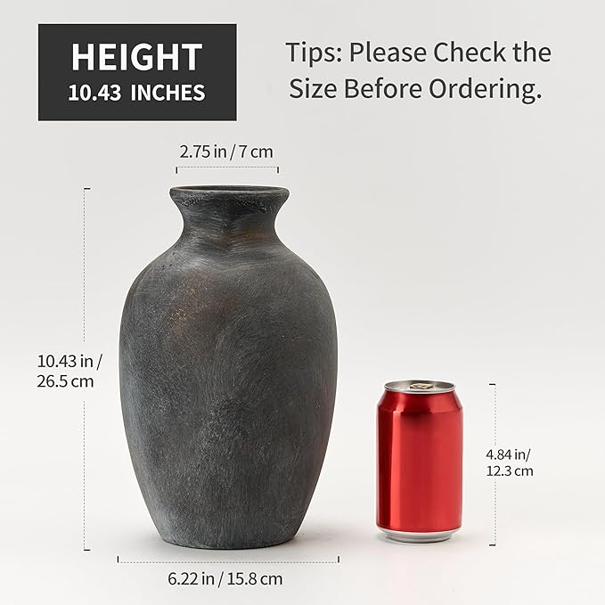 - Non-Slip Bottom Vase: This rustic vase for home decor measures 6.22" W x 10.43" H with a mouth diameter of 2.75", and is ideal for displaying artificial flowers, dried florals and fresh flowers. The bottom of the pottery vase is equipped with a non-slip pad, which prevents the flower vase from scratching the table or floor during movement during placement.