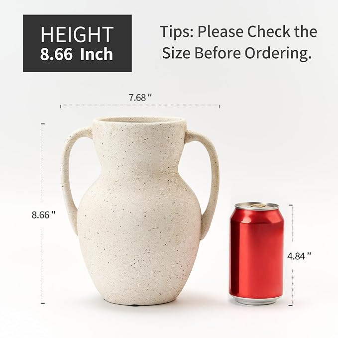 - 【Versatile Decor Piece】The rustic vase measures 8.66" height and 5.9" width. Perfect for fresh or dried flowers. Effortlessly elevate the aesthetics of any room -be it your living room, kitchen, bedroom,bathroom, or office-with our product. It seamlessly blends with various decor styles,including boho, rustic,modern farmhouse,and cottagecore.For an extra pop of color, simply add your favorite faux or fresh flowers.