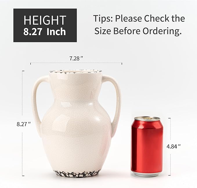 - 【Warm and Rustic style】This farmhouse vase is designed to show the simple and rustic style. The unique design of the two handles is convenient for us to carry the vase.Watertight design enables the ceramic vase boho table decor suitable for fresh, faux and dried botanicals, or alone, as a beautiful object in its own right.