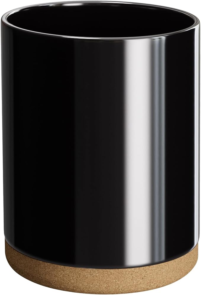 Ceramic Kitchen Utensil Holder for Countertop, Modern Crock with Non-Slip Cork Base, Counter Organizer for Cooking Tools 、Black