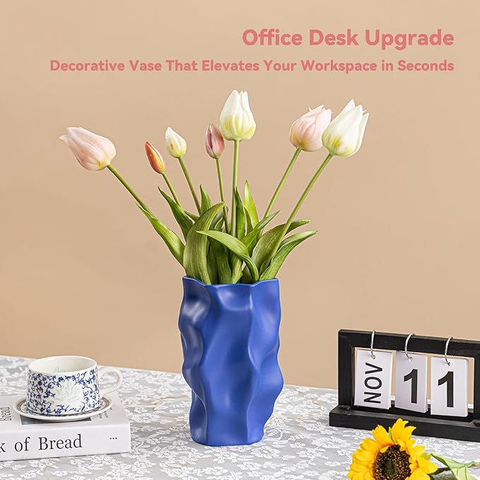 - 【Boho & Modern Style in One Vibrant Vase】Klein Blue glaze with organic wave texture complements boho macramé walls, farmhouse wooden tables, or minimalist offices. Polished base protects surfaces—no scratches, just pure, head-turning color.