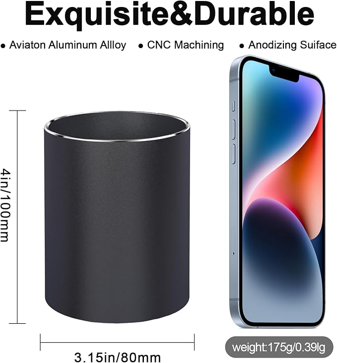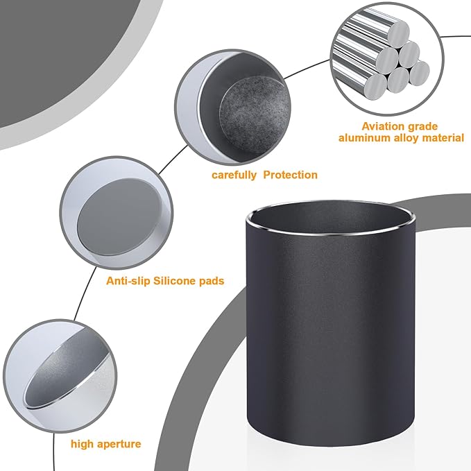 - 【HIGH QUALITY METAL】Made of high quality metal and through hard oxidation, the net weight of aluminum pen holder is 0.42lb, sturdy and durable. Unlike other plastic/acrylic pencil cups on the current market, our metal pencil holder is not easy to break, and has a longer lifespan to use. No worries about anything, if you got any problems about the product, we promised to offer a 3-YEAR WARRANTY for every customers.