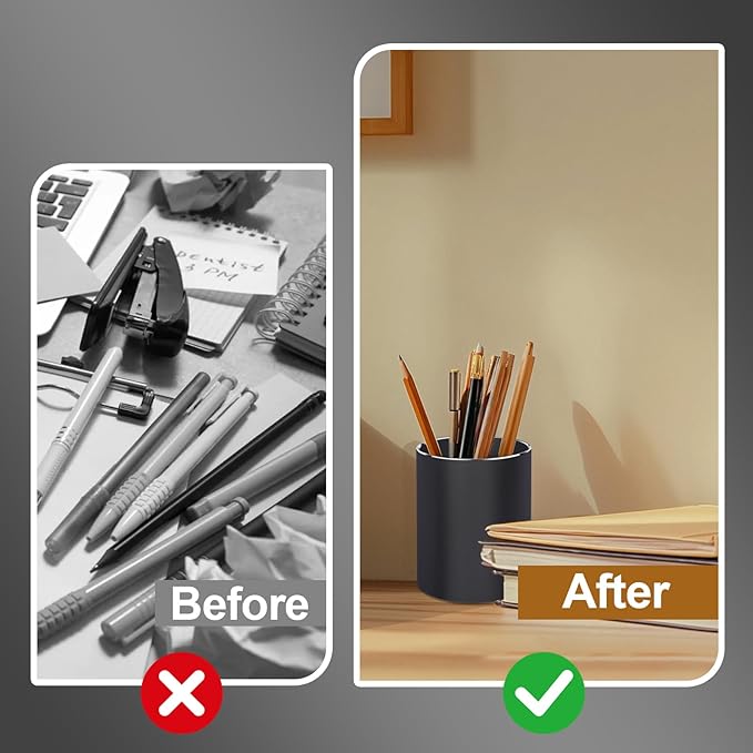- 【Widely used】 Simple and practical desktop storage box, can store pens, Pencil,Marker, Ruler, Scissors and other office supplies, as well as makeup brushes ,Brow pencil, eyeliner and other beauty tools. A variety of desktop organizer cups for your desk, Dressing table, Bedside table is the best companion.
