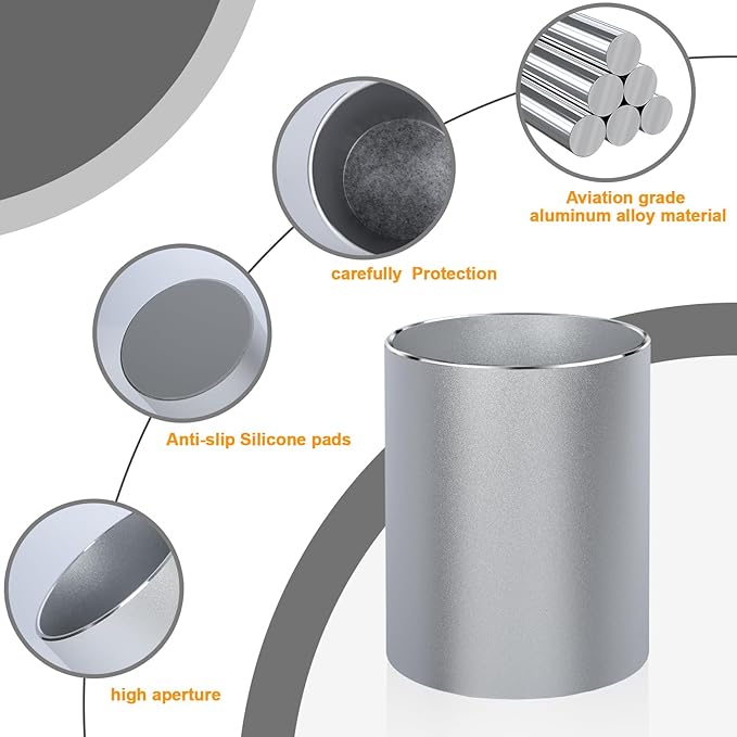 Metal Pen Holder Aluminum Pencil Holder Desktop Organizer Black for Office, School, Home 3.15 x 3.15 x 3.94 Inches-Silver