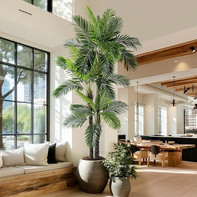 9.1FT Artificial Phoenix Palm Tree with Coconut Fruit Outdoor Indoor Decor Large Faux Coconut Silk Palm Tree Tropical Fake Tree Large Faux Sago Palm Plant for Home Yard Outside Patio Poolside