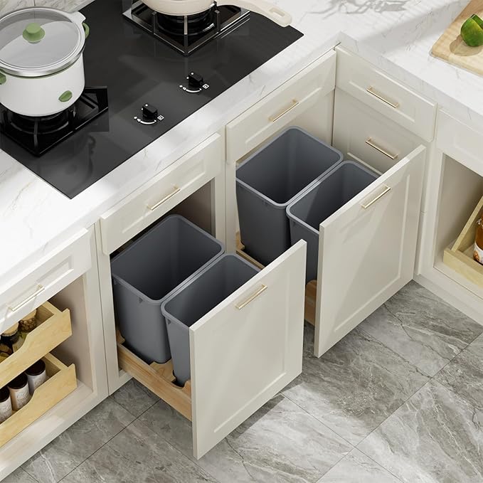 - 【Special Cabinet Trash Can】This trash can is designed for cabinet trash cans with a width of 15 inches and 18 inches. 15-inch cabinets can accommodate one vertical trash can, and 18-inch cabinets can accommodate two horizontal trash cans