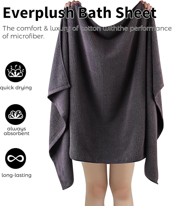 - Everplush Technology: Everplush bath towels are crafted from a premium blend of 55% cotton and 45% microfiber, enhanced by our exclusive patented technology. This unique composition delivers exceptional absorbency while promoting rapid drying. Thanks to high-grade materials and a specialized dual-loop construction, these towels offer an ultra-luxurious, velvety feel against the skin—turning every use into a spa-like treat. Built to last, they maintain their quality through countless washes.
