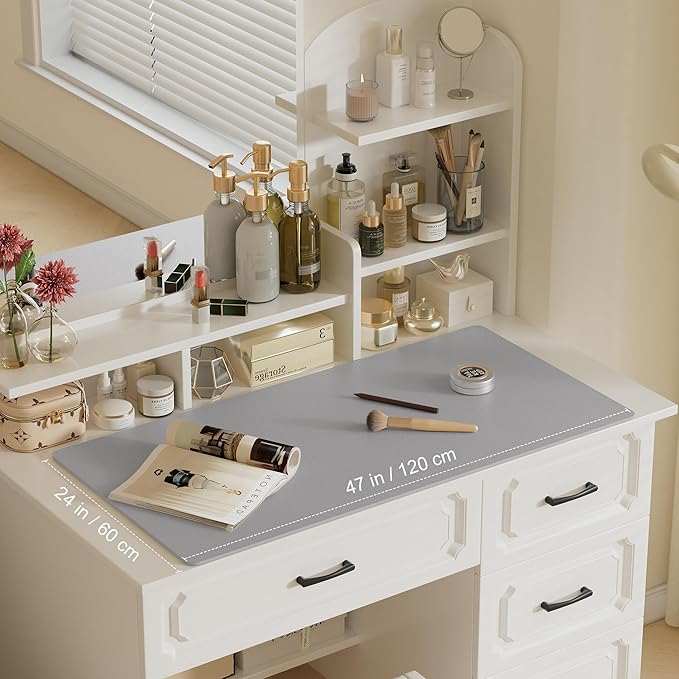 Aothia Leather Desk Pad Protector, Office Desk Mat, Large Mouse Pad, Laptop Desk Pad, Non-Slip PU Leather Desk Blotter, Waterproof Desk Writing Pad for Office and Home (Light Grey, 47" x 24")