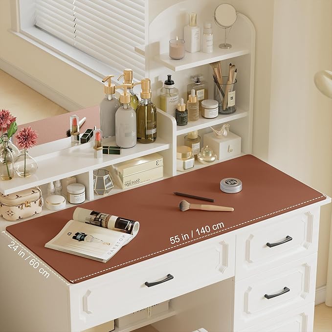 Aothia Leather Desk Pad Protector, Office Desk Mat, Large Mouse Pad, Laptop Desk Pad, Non-Slip PU Leather Desk Blotter, Waterproof Desk Writing Pad for Office and Home (Brown, 55" x 24")