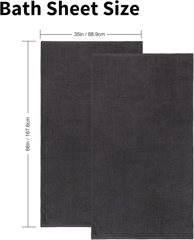Everplush Diamond Collection Extra Large Bath Towel Sheet – 2 PK, Super Soft & Highly Absorbent, Quick-Drying, Oversized & Thick. Perfect for Bathroom, Pool, Swimming Use (Charcoal, 35" x 66" 2PK)