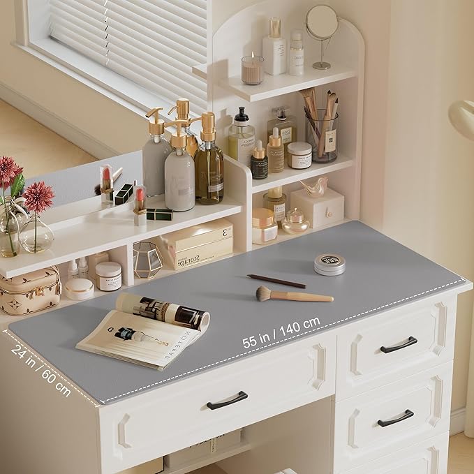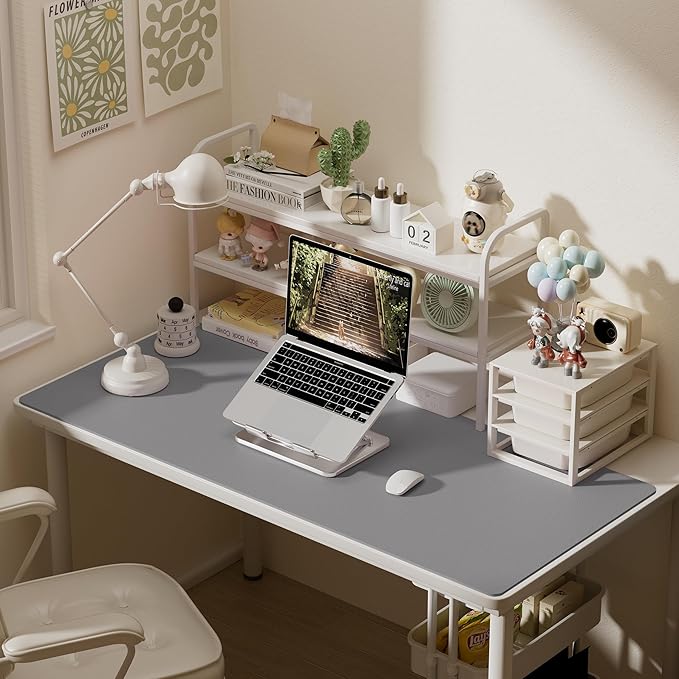 Aothia Leather Desk Pad Protector, Office Desk Mat, Large Mouse Pad, Laptop Desk Pad, Non-Slip PU Leather Desk Blotter, Waterproof Desk Writing Pad for Office and Home (Light Grey, 55" x 24")