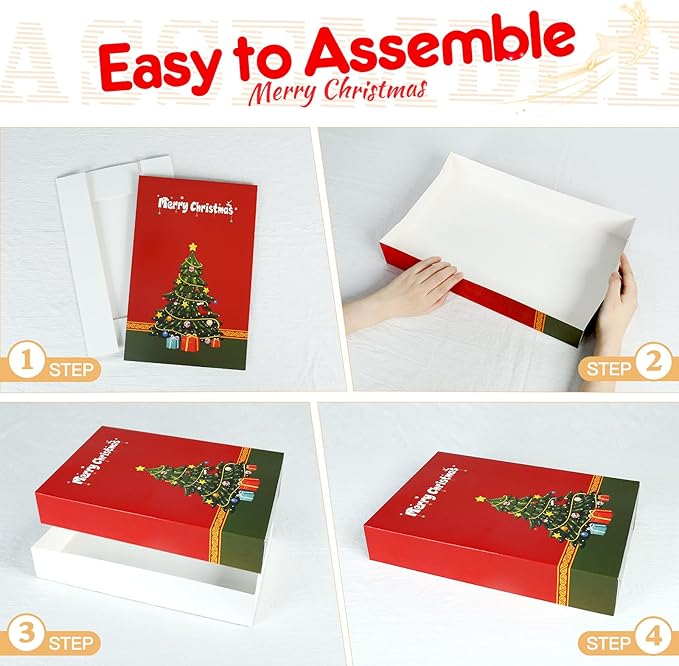 - Easy Assembly System:This christmas gift boxes assemble in seconds – just fold along the marked lines and lock into place. The clever design of the clothes boxes for gifts stays securely closed while in use, then flattens completely when empty for convenient storage. No tools or complicated steps needed, making gift boxes with lid ready whenever you need it.