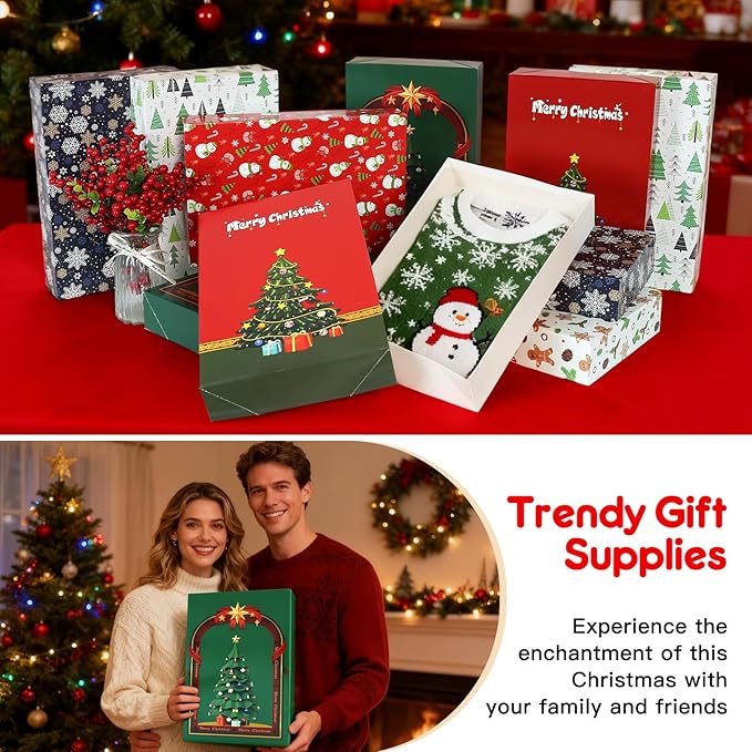 - Sophisticated Design Selection:Our gift boxes for presents are choose from 6 beautifully crafted holiday-themed patterns. Each vibrant print in gift wrapping boxes brings a festive touch to your gifts, perfect for Christmas and other celebrations.