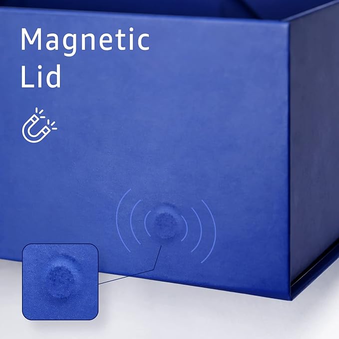 LIFELUM Navy Blue Birthday Gift Box for Men 13.8 x 8.3 x 4.4 inch, Groomsmen Proposal Gift Box for Presents with Lids Ribbon,Card,Shredded Paper Filler